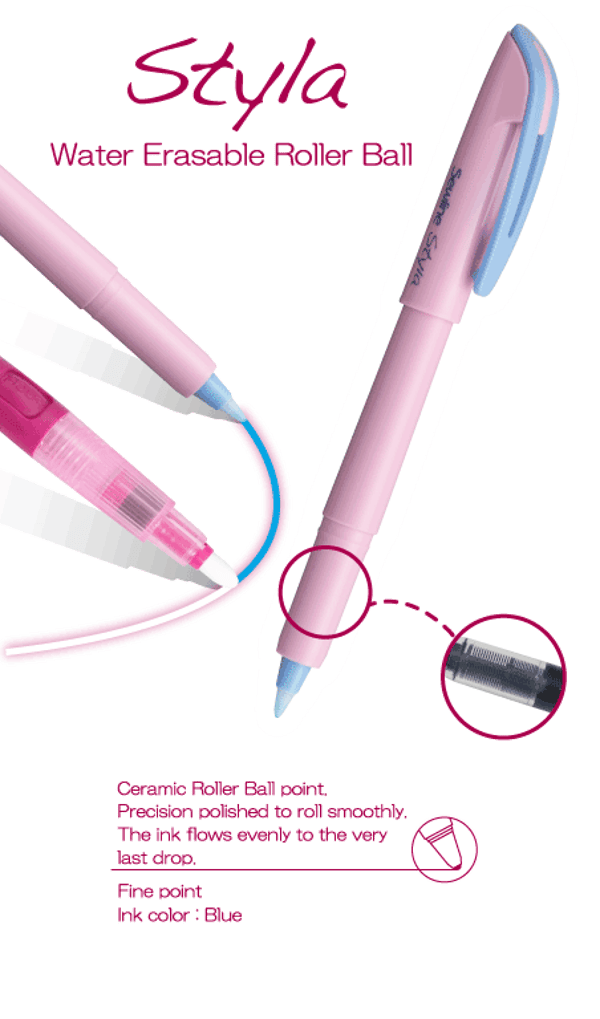 De 0,8 mm punt is een keramische rollende bal die soepel glijdt en gelijkmatig inkt afgeeft zonder druk, zodat het fijne stoffen niet beschadigt.