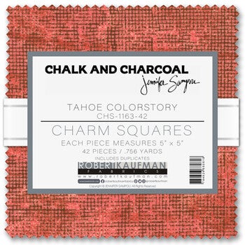 CHS116342 - Charm Pack "CHALK AND CHARCOAL(42pc) - Het Charm Pack bevat 42 stofjes van 5 x 5 inch / 12,5 x 12,5 cm.