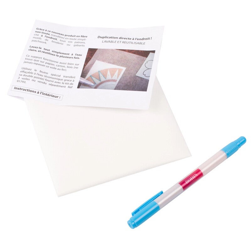 - Set met 3 transfer-vellen en 1 transfer-pen (met twee markeerstiften).
