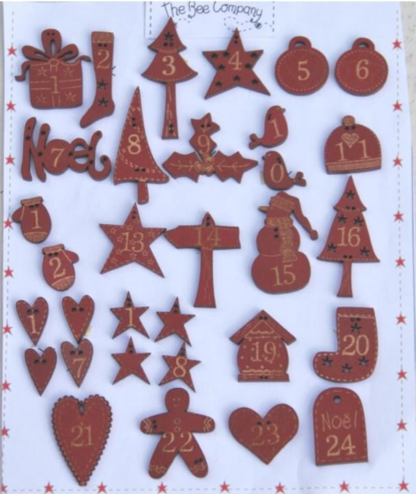 Knopen - Les Boutis de Lucie 24 Adventcalendar buttons - Red