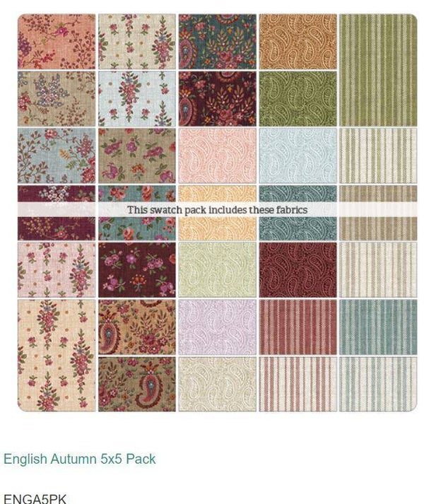 English Autumn - Jan ShoreHet Charm Pack bevat 42 stofjes van 5 x 5 inch / 12,5 x 12,5 cm.