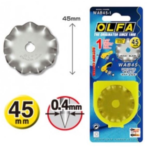 Dit snijblad heeft een vlijmscherpe rand en is geschikt voor het snijden van stof, papier, dekzeil, vinyl, stoffen bekleding etc. Dit mes met een golfsnede is gemaakt van hoogwaardig roestvrij staal en past alleen op het OLFA 45 mm Deluxe rolmes RTY-2/DX.