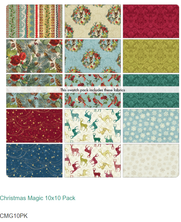 Pakket met 42 lapjes van 10 x 10 inch (± 25,4 x 25,4 cm) met de collectie Christmas Magic.